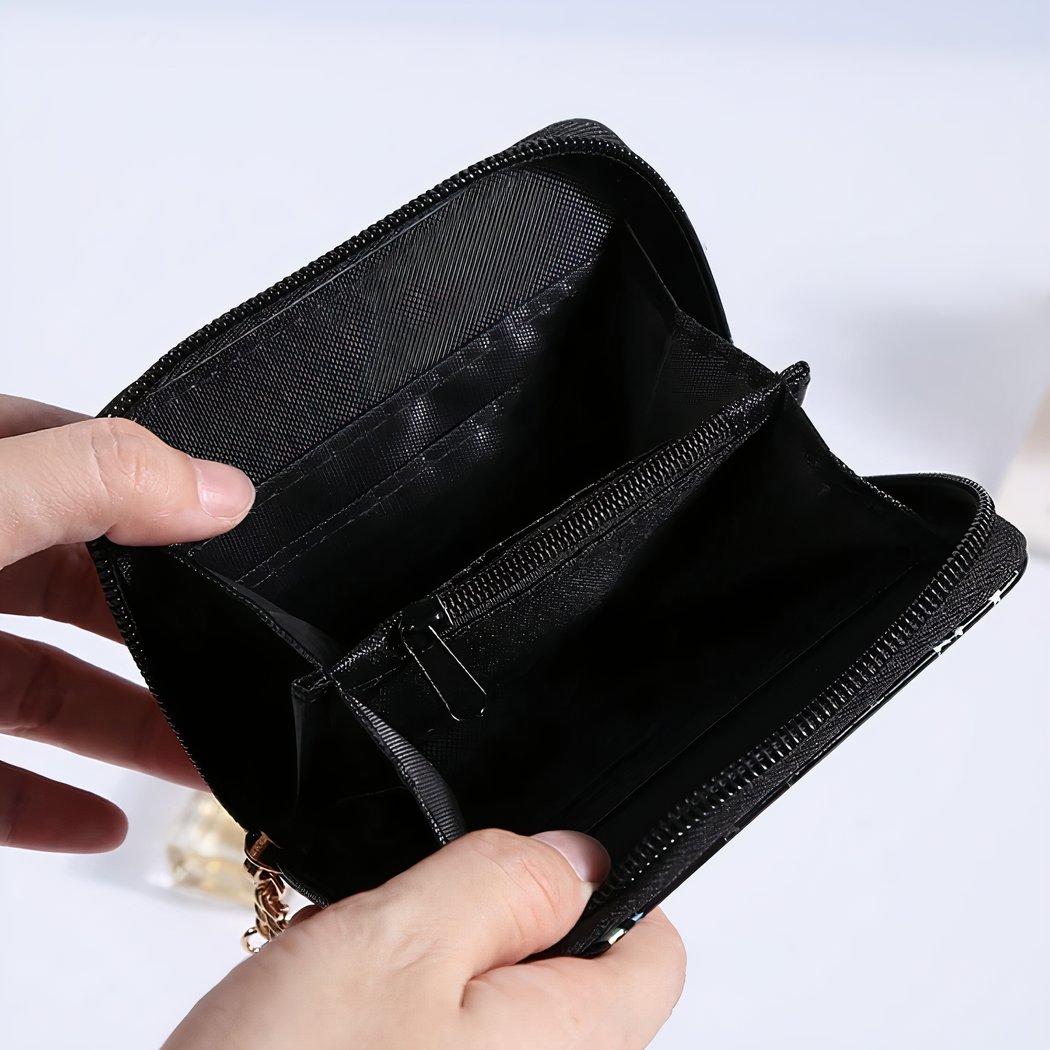 Ce portefeuille est d’autant plus original qu’il comporte un petit pendentif en forme de cœur et également un pompon noir, assorti à la couleur du portefeuille. Cela lui donne une petite touche d’originalité.