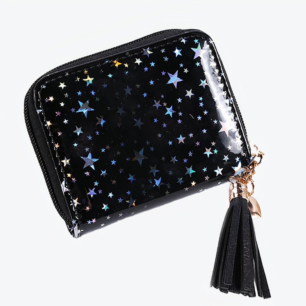 Les magnifiques étoiles de ce portefeuille brilleront au contact de la lumière. Cela apportera un petit plus à ce magnifique portefeuille noir. Il sera unique et brillera chaque jour lorsque vous l’utiliserez.