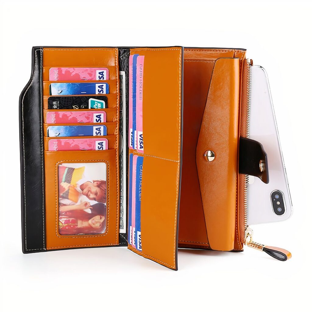 Avec sa grande capacitรฉ de rangement, vous pourrez glisser dans votre portefeuille votre smartphone et encore plein d’autres papiers.