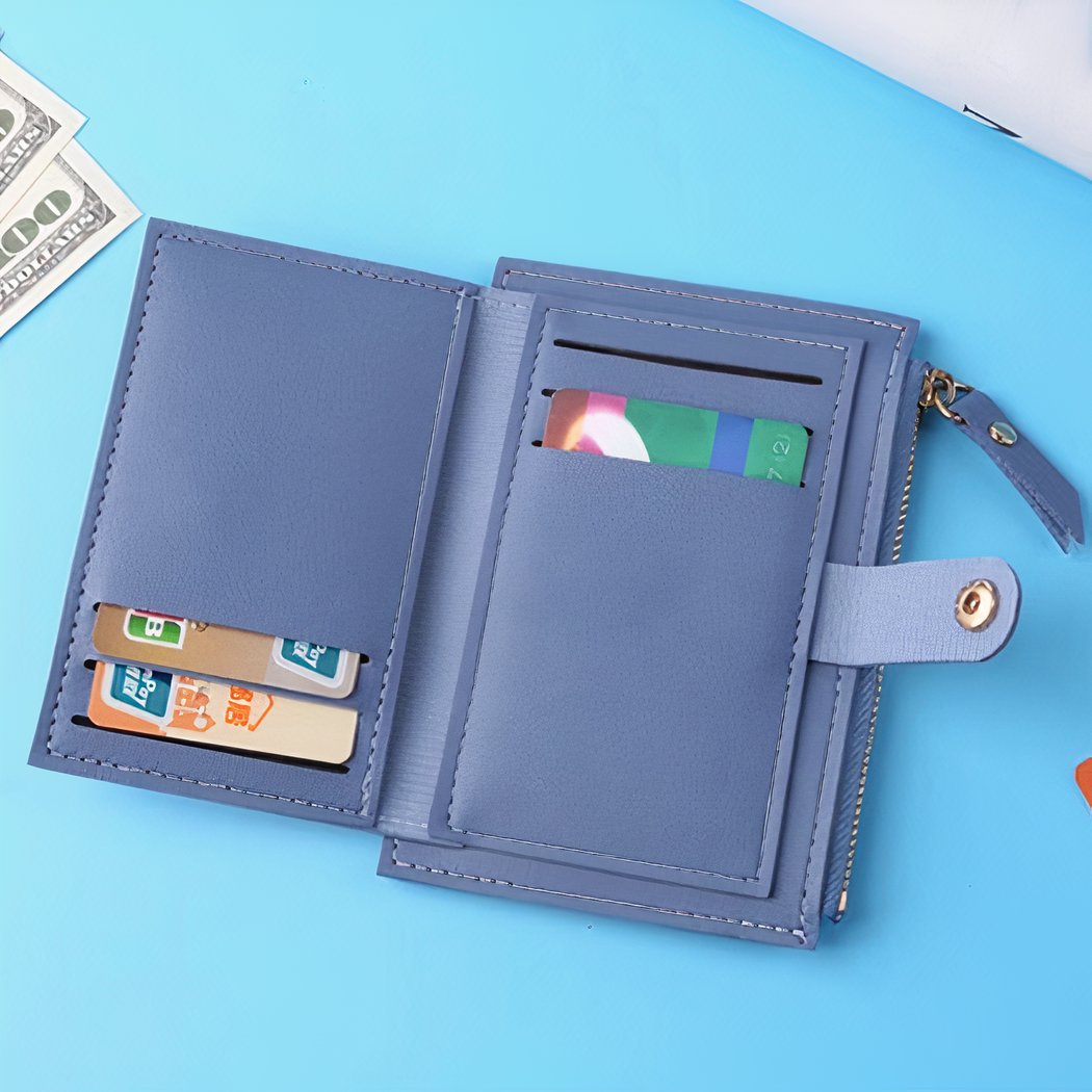 Un cuir synthétique de qualité dans une couleur bleu qui plaira à tous. Un portefeuille qui garde tout ce dont vous avez vraiment besoin en sécurité et qui se glisse dans le sac ou dans la poche.